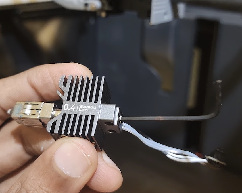 Another rant: Since I wanted to swap out the stainless steel nozzle with a hardened steel one, I could have just replaced it without going through the effort of pulling out the stuck filament but Bambulab doesn’t give the wiring attached with the nozzle which doesn’t look too straightforward TBH to swap out.